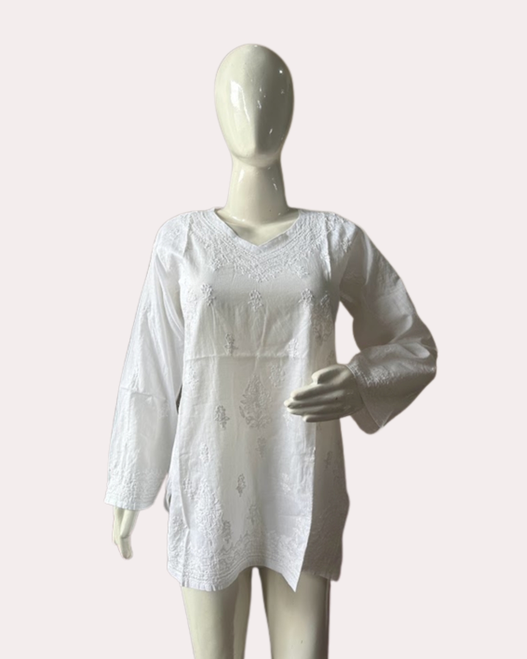 DETAILS: A CHIKAN EMBROIDERY SHORT KURTI
